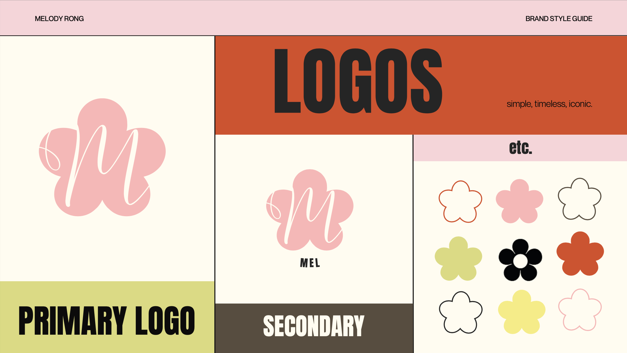 There often lies complexities within simplicity; which is what I hope my logo portrays. The organic shapes are to invoke friendly characteristics that are playful and brings back a sense of youth. However, the simple block colors builds a contrast of sophisication and almost builds a sense of timelessness.